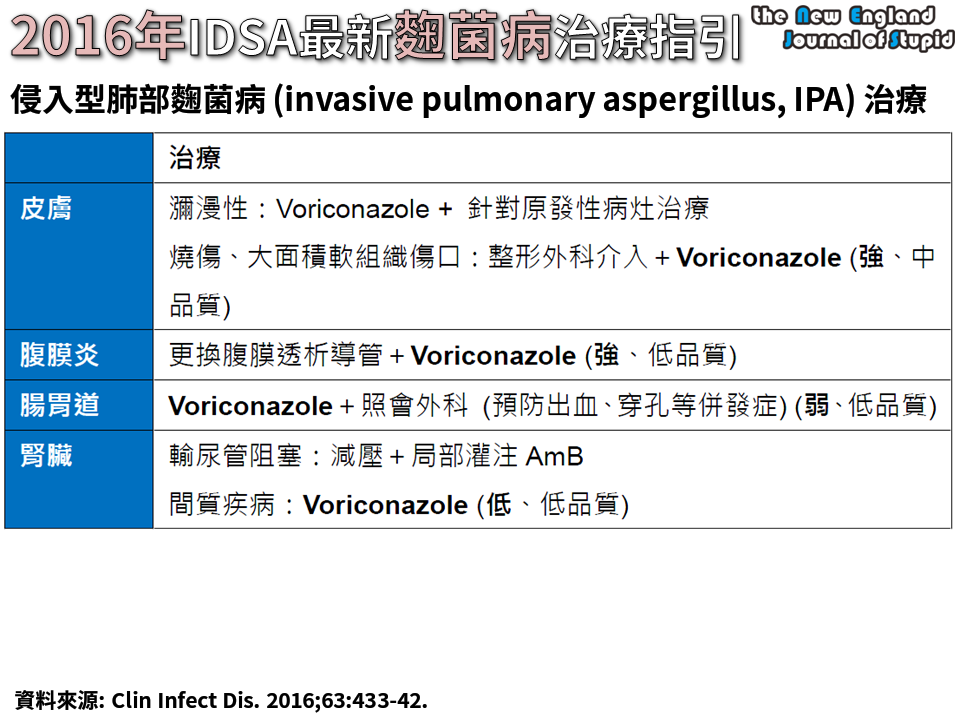 [臨床藥學] IDSA 2016最新版麴菌病治療指引 (IDSA Practice Guidelines for the Diagnosis and Management of Aspergillosis 2016)