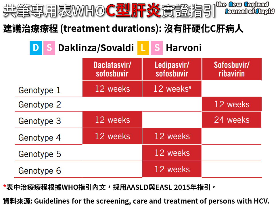 [臨床藥學] 共筆專用表 WHO C型肝炎治療指引 (WHO Guidelines for the screening, care and treatment of persons with chronic HCV)